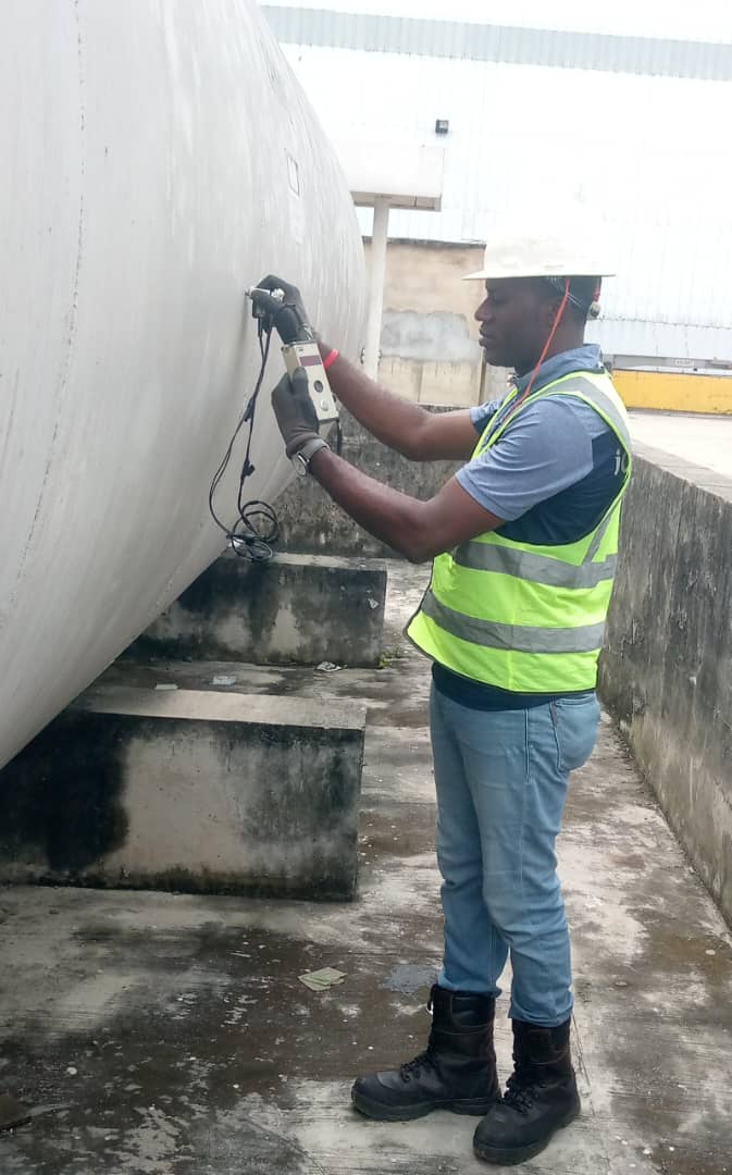 The Inspectors are ASNT II (AMERICAN SOCIETY FOR NON-DESTRUCTIVE TESTING) trained; qualified inspectors are LEEA, NSL, LOLER, PUWER, IADC, etc., certified and holds approved Certificates from the Federal Ministry of Labor and Productivity on certification and inspection of lifting equipment, boilers, pressure vessels, etc.To visually inspect, proof load test, and certify the load-bearing member like slings, shackles, cranes, hooks, links, pad-eyes, winches, fork Lifts, MAN LIFT, etc.